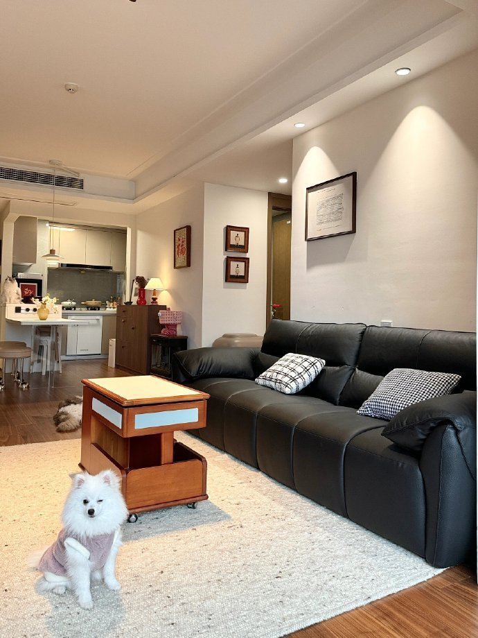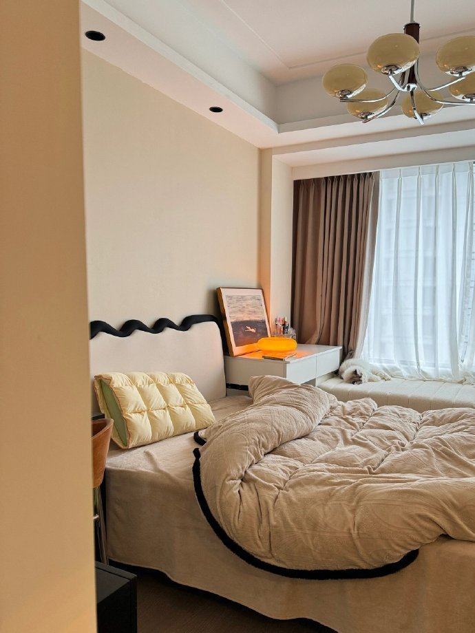⚫️⚪️🟤三个颜色搭配让空间更加通透和温馨,大面积的奶白色与棕色黑色的点缀,使客厅卧室都更具质感。